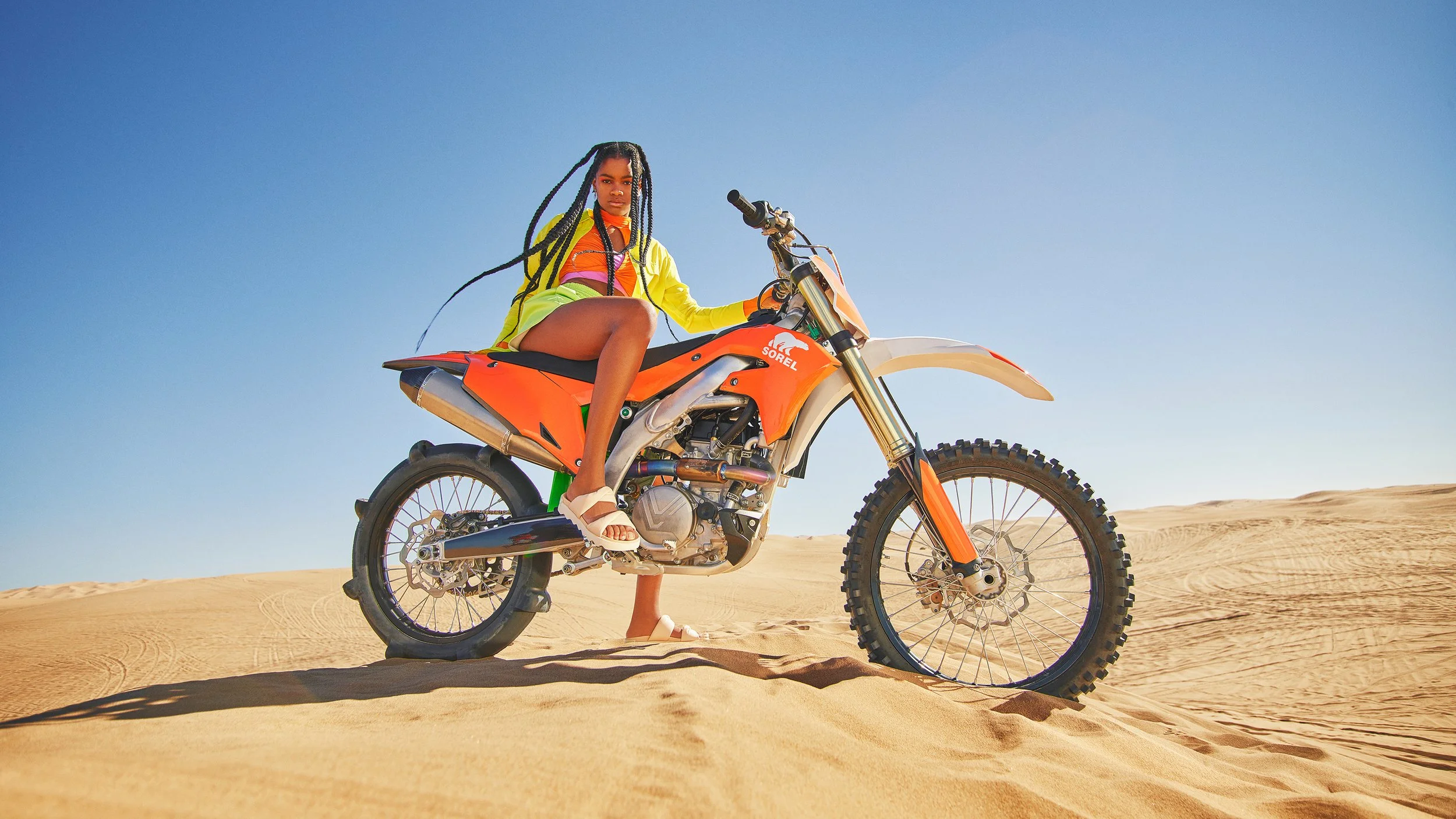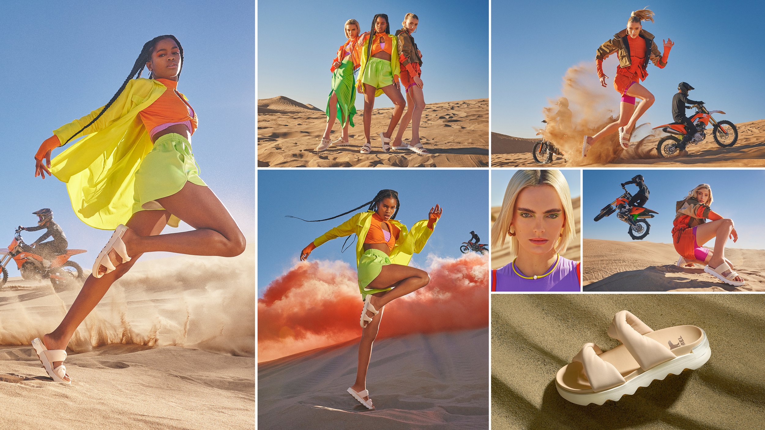 To bring High Gear to life, the concept leaned into extreme juxtaposition to deliver a bold and unexpected spring statement. Shot across Sand, Street and Sea, the campaign paired high powered vehicles with striking fashion forward styling. The collision of raw performance and elevated color created an eye catching visual impact, redefining seasonal expectations for SOREL while amplifying the brand’s intersection of fashion and function.