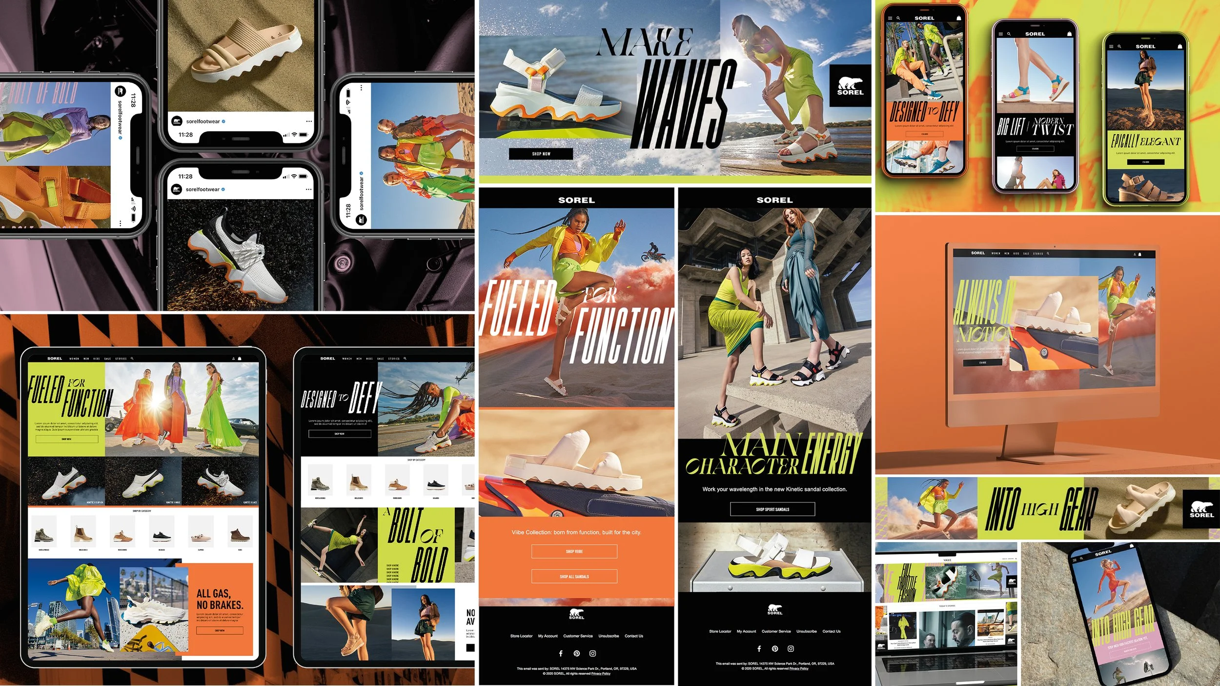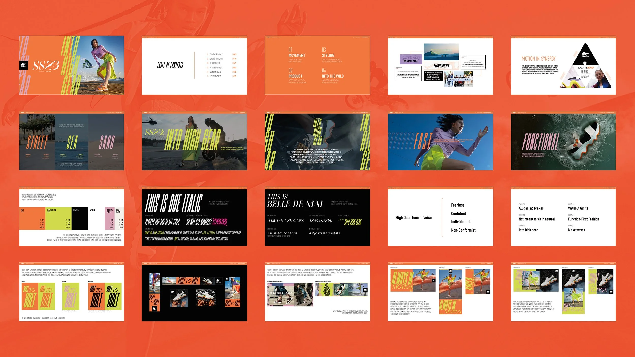 The S23 High Gear campaign was created to embody SOREL’s legacy of bold momentum and boundary pushing function. Rooted in the brand’s drive to challenge limits and redefine convention, the campaign highlighted the intersection of fashion and performance as the force moving us forward. Through an energetic all gas no brakes narrative, High Gear captured the adrenaline of progress, accelerating ambition and reinforcing that SOREL was never made to stand still.